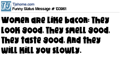 - # 141707 Women are like bacon: we look good, we smell good, we taste good, and we will slowly kill you