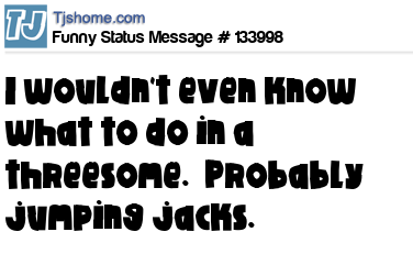 X says I wouldn't even know what to do in a threesome. Probably jumping jacks.