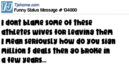 X says I dont blame some of these athletes wives for leaving them I mean seriously how do you sign million $ deals then go broke in a few years...