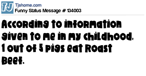 X says According to information given to me in my childhood, 1 out of 5 pigs eat Roast Beef.