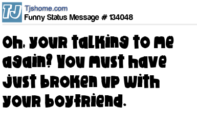 X says oh, your talking to me again? You must have just broken up with your boyfriend.