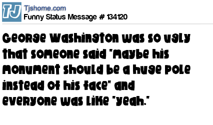 X George Washington was so ugly that someone said "maybe his monument should be a huge pole instead of his face" and everyone was like "yeah."