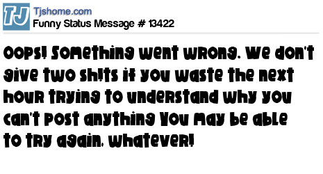 X is Oops! Something went wrong. We don't give two sh!ts if you waste the next hour trying to understand why you can't post anything You may be able to try again, whatever!