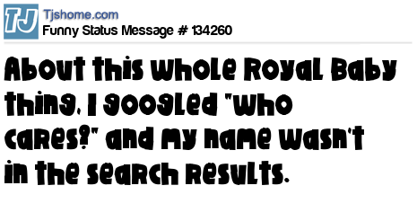 X says About this whole Royal Baby thing, I googled "who cares?" and my name wasn't in the search results.
