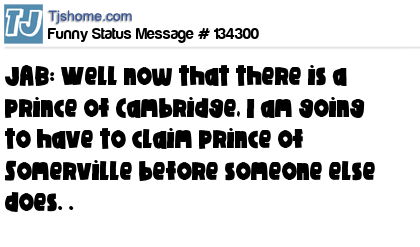 X says JAB: Well now that there is a prince of Cambridge, I am going to have to claim prince of Somerville before someone else does. .