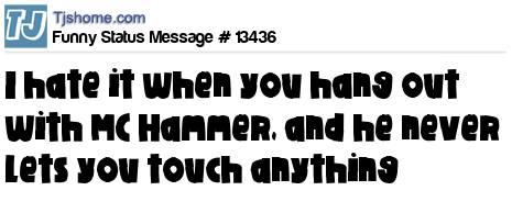 - # 31238 Don't you hate it when you're out with MC Hammer and he won't let you touch anything?