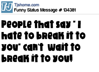 - # 169330 People that say " I hate to break it to you" can't wait to break it to you!