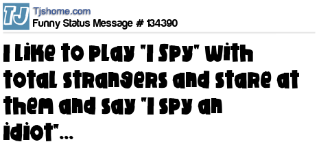 X I like to play "I Spy" with total strangers and stare at them and say "I spy an idiot"...