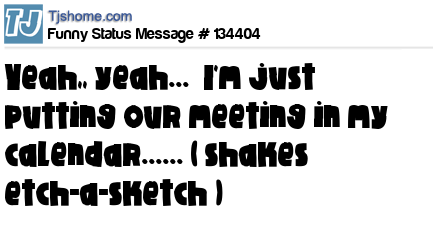 X Yeah,, yeah... I'm just putting our meeting in my calendar...... ( shakes etch-a-sketch )
