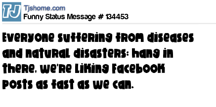 X says Everyone suffering from diseases and natural disasters: hang in there, we're liking Facebook posts as fast as we can.