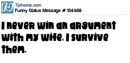 - # 178629 My wife gets the last word in any argument. Anything I said after that is considered the start of a new argument.