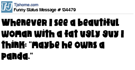 X says Whenever I see a beautiful woman with a fat ugly guy I think: ''maybe he owns a panda.''
