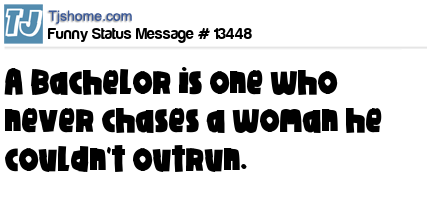 X A Bachelor is one who never chases a woman he couldn't outrun.