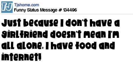 X says just because I don't have a girlfriend doesn't mean I'm all alone, I have food and internet!