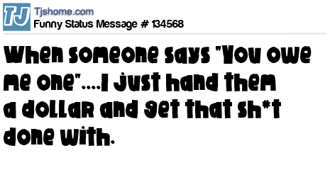 X says When someone says "You owe me one"....I just hand them a dollar and get that sh*t done with.