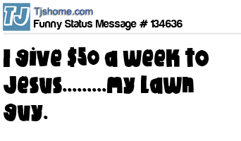 - # 158915 (true story) The neighbor guy stop over to thank me. Every time I'm outside grilling and take my shirt off his wife jumps up and runs outside to "mow the lawn" I thought it was weird that she mowed it twice a week.