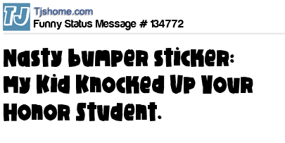 - # 23092 Just Saw A Bumper Sticker That Said... "My High School Dropout, Knocked Up Your Honor Roll Student..."