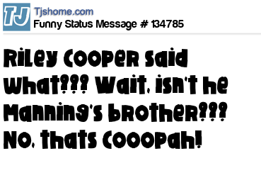 X says Riley Cooper said what??? Wait, isn't he Manning's brother??? No, thats Cooopah!