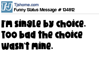 - # 109582 I'm single by choice. Not MY choice. But it's still a choice