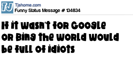 - # 142165 "Try googling Google and then hit lucky.....then Bing Bing, and Yahoo Yahoo. If you really bored Bing Google then Google Bing Yahoo" - me at the bar talking to a nerdy girl drunk!