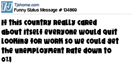 X If this country really cared about itself everyone would quit looking for work so we could get the unemployment rate down to 0%!