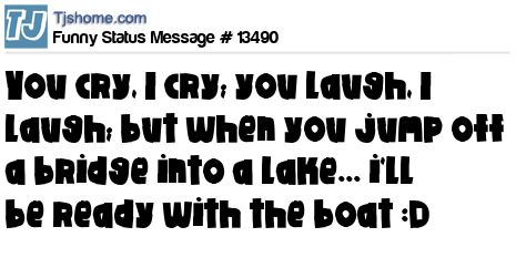 - # 15273 You cry I cry your happy I am happy you laugh I laugh you jump off a bridge I laugh even harder