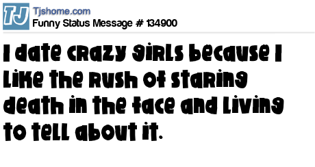 X says I date crazy girls because I like the rush of staring death in the face and living to tell about it.