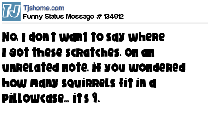 - # 179352 No, I do not want to talk about how I got all these scratches. On a completely unrelated note; If you've ever wondered how many squirrels fit in a pillowcase,,,.. it’s 9.