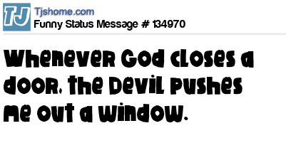 X says Whenever God closes a door, the Devil pushes me out a window.