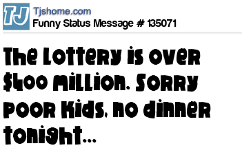 X The lottery is over $400 million. Sorry poor kids, no dinner tonight...