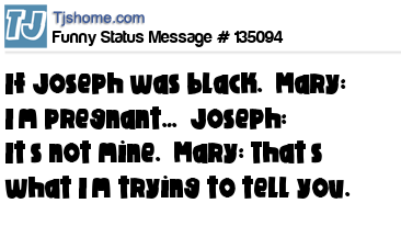 X says If Joseph was black. Mary: I’m pregnant… Joseph: It’s not mine. Mary: That’s what I’m trying to tell you.