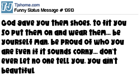 X God gave you them shoes, to fit you So put them on and wear them... be yourself man, be proud of who you are Even if it sounds corny... don't ever let no one tell you, you ain't beautiful