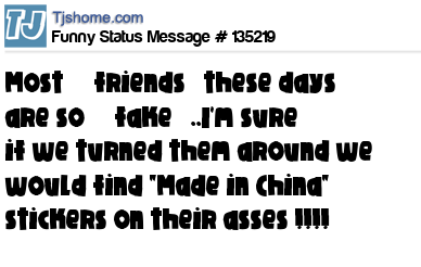 X Most friends these days are so fake ..I'm sure if we turned them around we would find "Made in China" stickers on their asses !!!!
