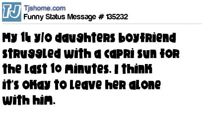X says My 14 y/o daughters boyfriend struggled with a capri sun for the last 10 minutes. I think it's okay to leave her alone with him.