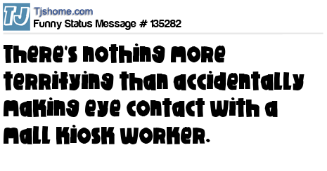 - # 154048 Nothing is more terrifying than making eye contact with the guy running that mall kiosk.