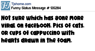 X Not sure which has gone more viral on facebook. Pics of cats, or cups of cappuccino with hearts drawn in the foam.