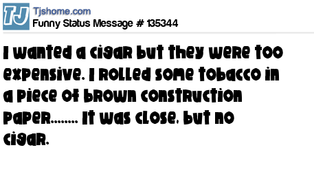 X I wanted a cigar but they were too expensive. I rolled some tobacco in a piece of brown construction paper........ It was close, but no cigar.