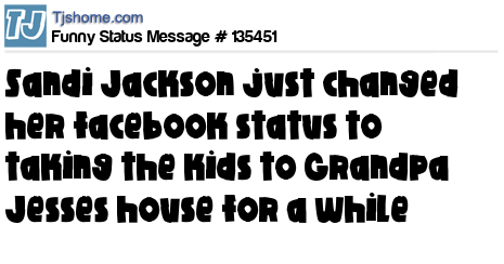 X says Sandi Jackson just changed her facebook status to taking the kids to Grandpa Jesses house for a while