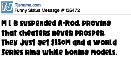 X says M L B suspended A-Rod, proving that cheaters never prosper. They just get $350M and a World Series ring while boning models.