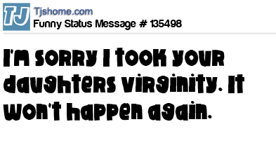 X says I'm sorry I took your daughters virginity. It won't happen again.