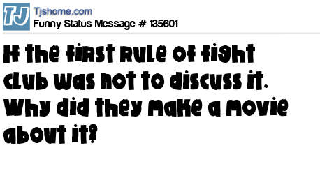 - # 83894 The 4th rule of Fight Club is: Don't hit reply all to the Fight Club newsletter.