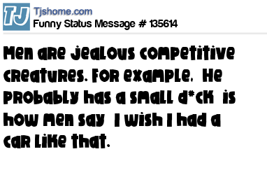 X says Men are jealous competitive creatures. For example, “He probably has a small d*ck” is how men say “I wish I had a car like that.”