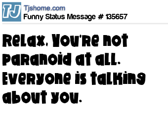 X Relax, You're not paranoid at all. Everyone is talking about you.