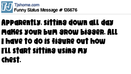 X says Apparently, sitting down all day makes your bum grow bigger. All I have to do is figure out how I'll start sitting using my chest.