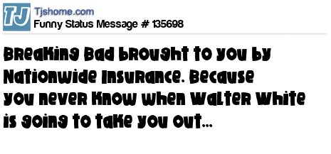 X says Breaking Bad brought to you by Nationwide Insurance. Because you never know when Walter White is going to take you out...