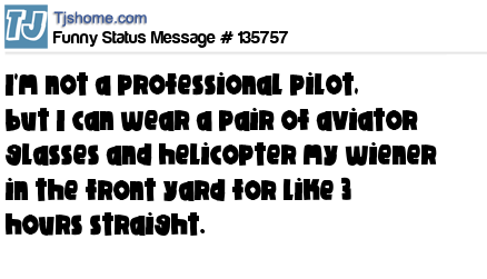 - # 145871 I'm not a professional pilot, but I can wear a pair of aviator glasses and helicopter my wiener in the front yard for like 3 hours straight! :-D