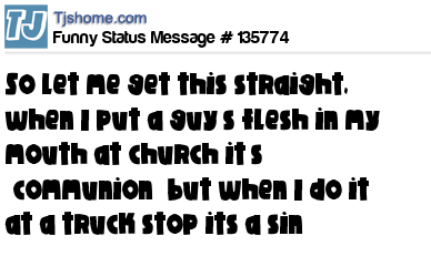 X So let me get this straight, when I put a guy’s flesh in my mouth at church it’s “communion” but when I do it at a truck stop its a sin