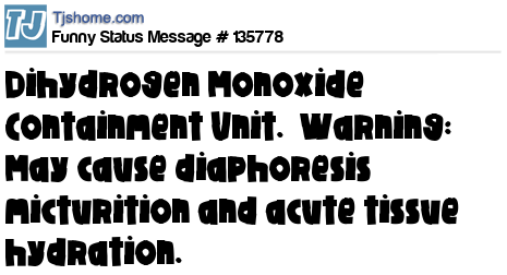 X says Dihydrogen Monoxide Containment Unit. Warning: May cause diaphoresis micturition and acute tissue hydration.