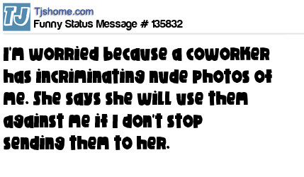 X says I'm worried because a coworker has incriminating nude photos of me. She says she will use them against me if I don't stop sending them to her.
