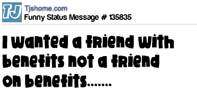- # 46062 Just heard this guys phone ring at McD's, it said "Friend With Benefits Calling, Friend with Benefits Calling." I guess the chick had Health Insurance?